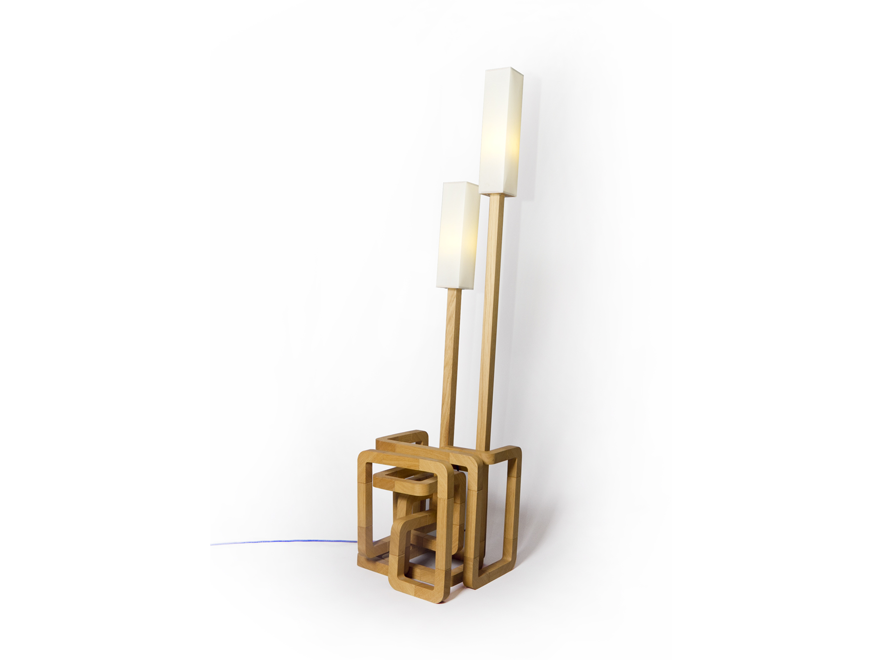 Chêne massif, papier japonais ignifugé, vernis mat.