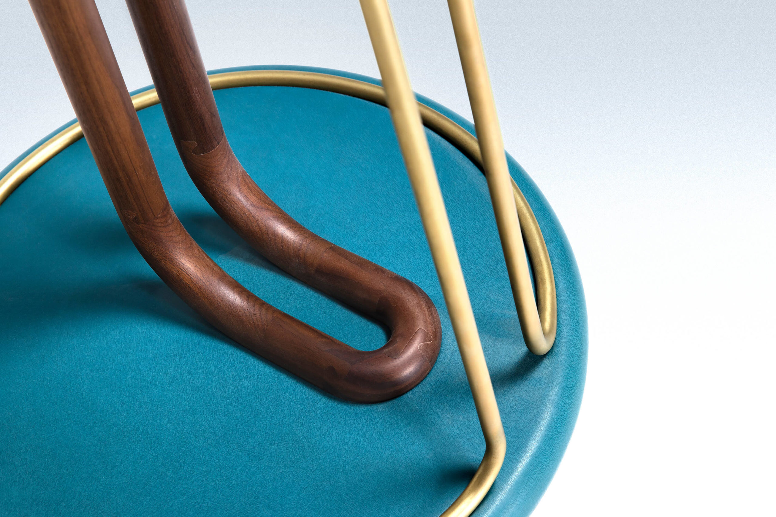 Noyer américain massif, laiton, cuir.